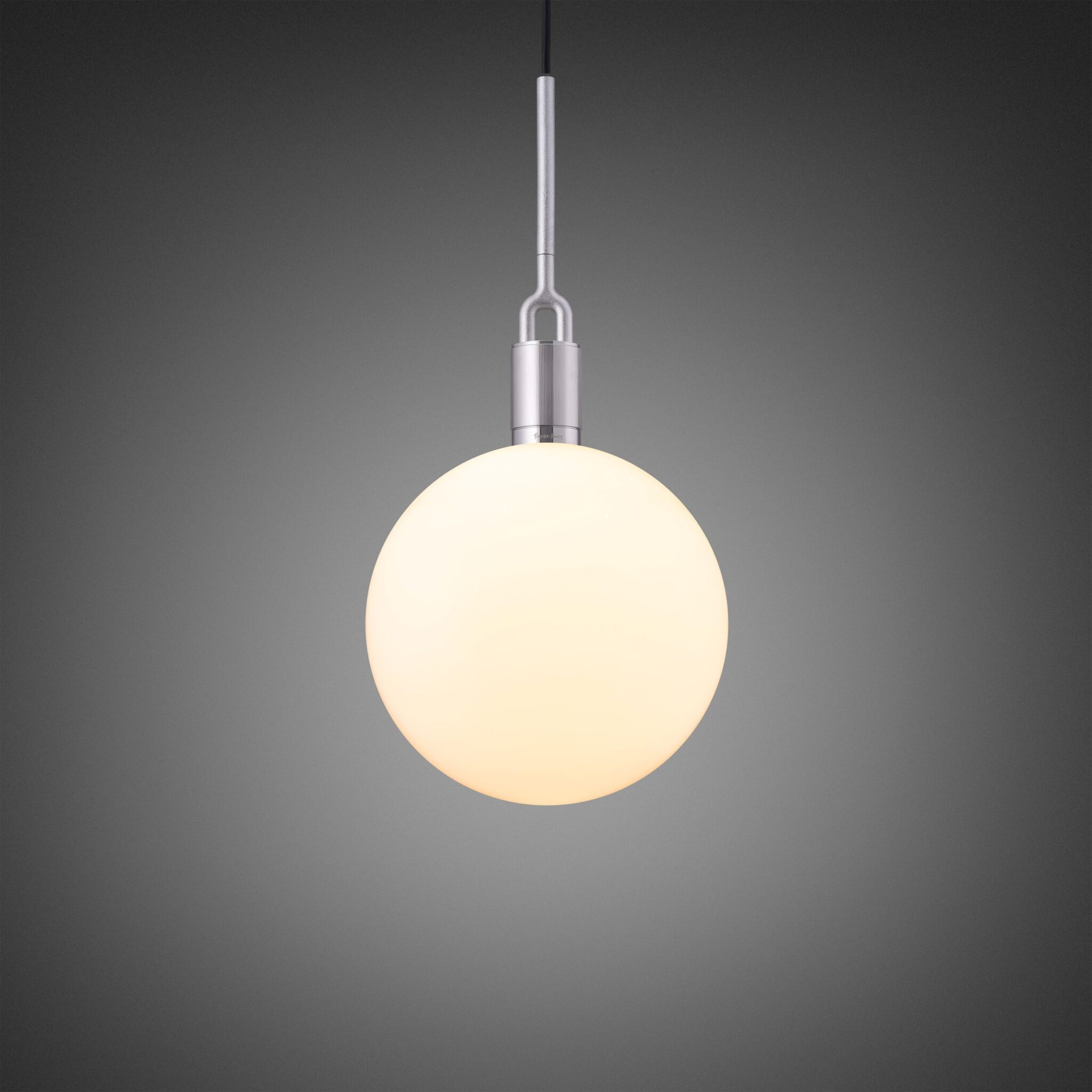 A light pendant made from cast and machined metal, featuring our signature diamond-cut linear knurl pattern and fork detailing, refined by hand. It comes with a hand blown opal glass globe. This light has an E27 bulb socket and matt black rubber cord plus a matt black metal ceiling rose. A Forked-specific dimmable Buster Bulb is included. Please note: The dimmable FORKED BUSTER BULB and FORKED PUNCH BULB require an LED compatible dimmer switch, such as our dimmer switches.