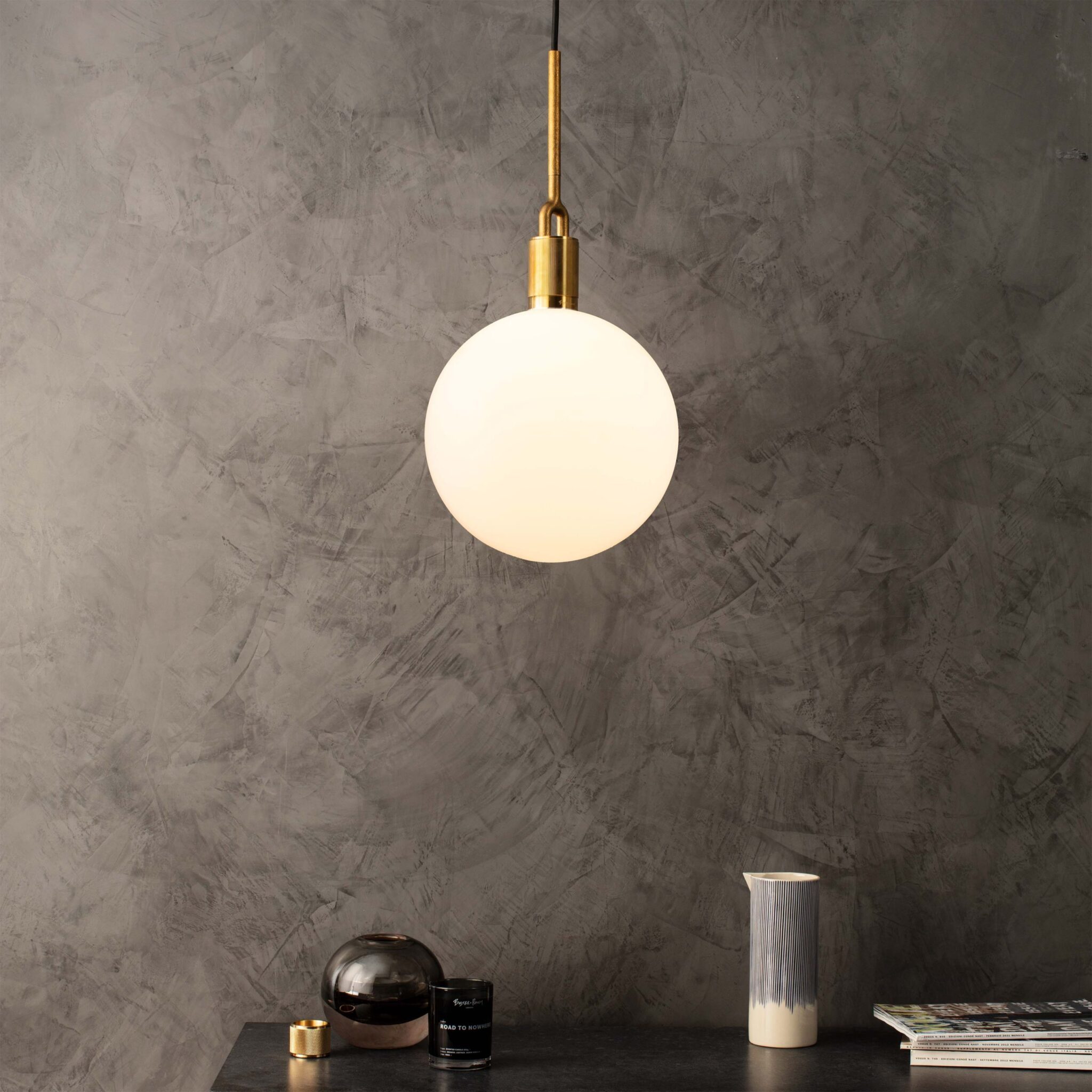 A light pendant made from cast and machined metal, featuring our signature diamond-cut linear knurl pattern and fork detailing, refined by hand. It comes with a handblown opal glass globe. This light has an E27 bulb socket and matt black rubber cord plus a matt black metal ceiling rose. A Forked-specific dimmable Buster Bulb is included. Please note: The dimmable FORKED BUSTER BULB and FORKED PUNCH BULB require an LED compatible dimmer switch, such as our dimmer switches.