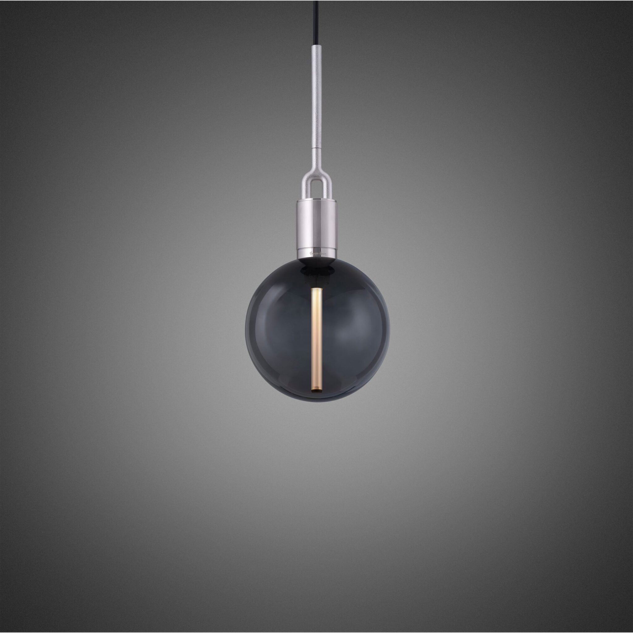 A light pendant made from cast and machined metal, featuring our signature diamond-cut linear knurl pattern and fork detailing, refined by hand. It comes with a hand blown smoked glass globe. This light has an E27 bulb socket and matt black rubber cord plus a matt black metal ceiling rose. A Forked-specific dimmable Buster Bulb is included. Please note: The dimmable FORKED BUSTER BULB and FORKED PUNCH BULB require an LED compatible dimmer switch, such as our dimmer switches.